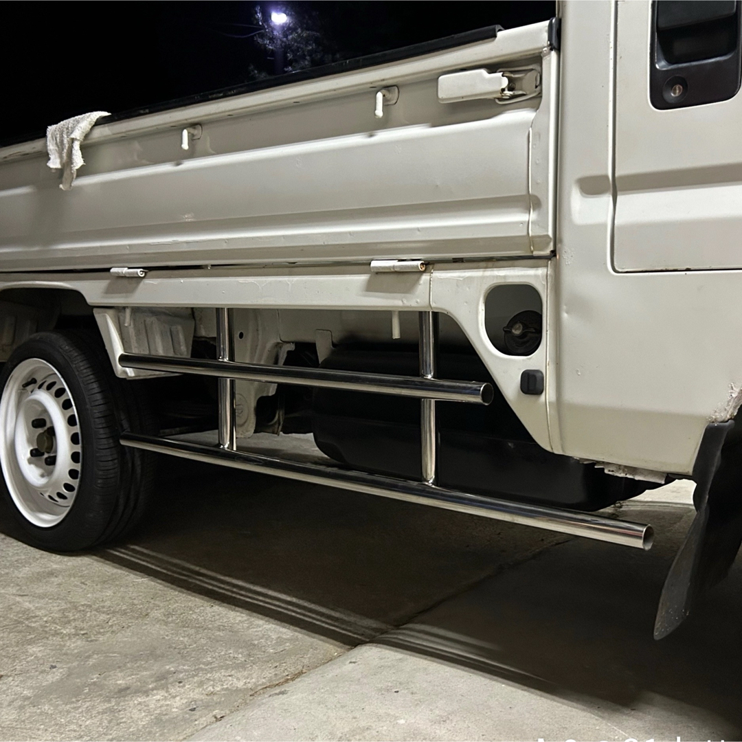 取り付けは、10ミリステンレスナットを溶接していますので、荷台に穴を開けて10ミリのボルト止めで取り付けることができます。