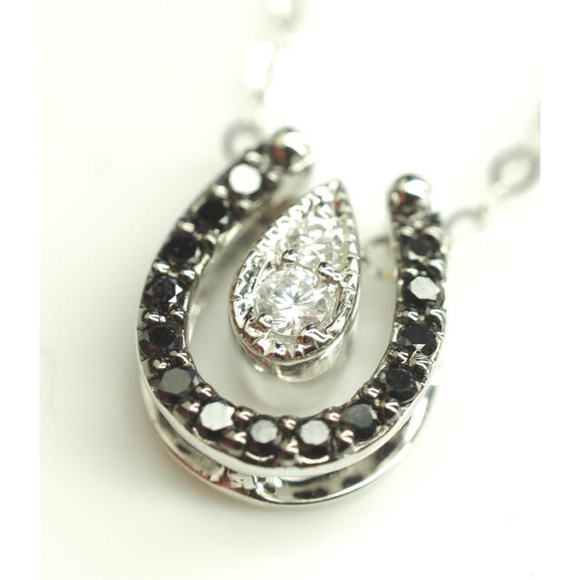 こちらはペンダントが二個付いており、シーンに合わせてペンダントを付け替えたり外したりしてお使い頂けます。ホースシューには綺麗にセッティングされたブラックダイヤモンドでクリアな可愛いペンダントには綺麗なダイヤモンドが0.06ct使われております。