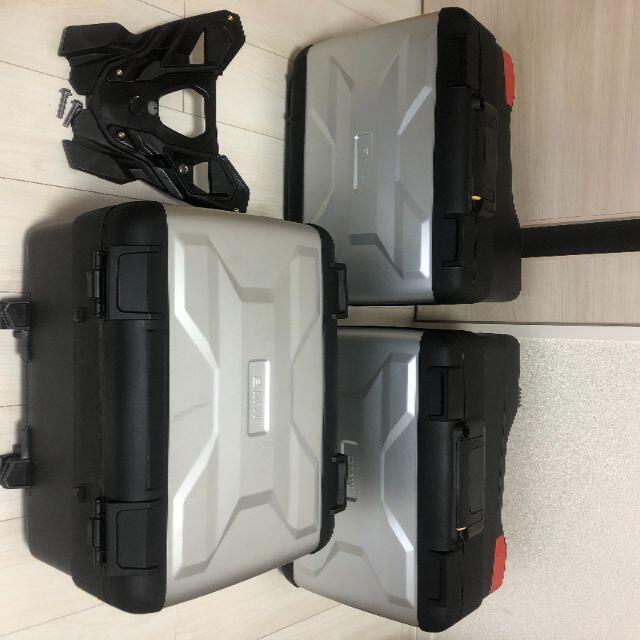ツーリングで3回ほど使用してます。転倒歴無し。トップケース用ホルダーも付属します。トップケース用バックレストは有りません。サイドパニア・トップケース各鍵付きです。