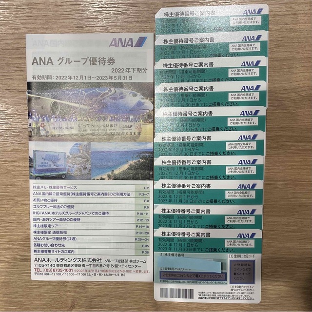 ANAの株主優待券10枚と優待券冊子のセットです。