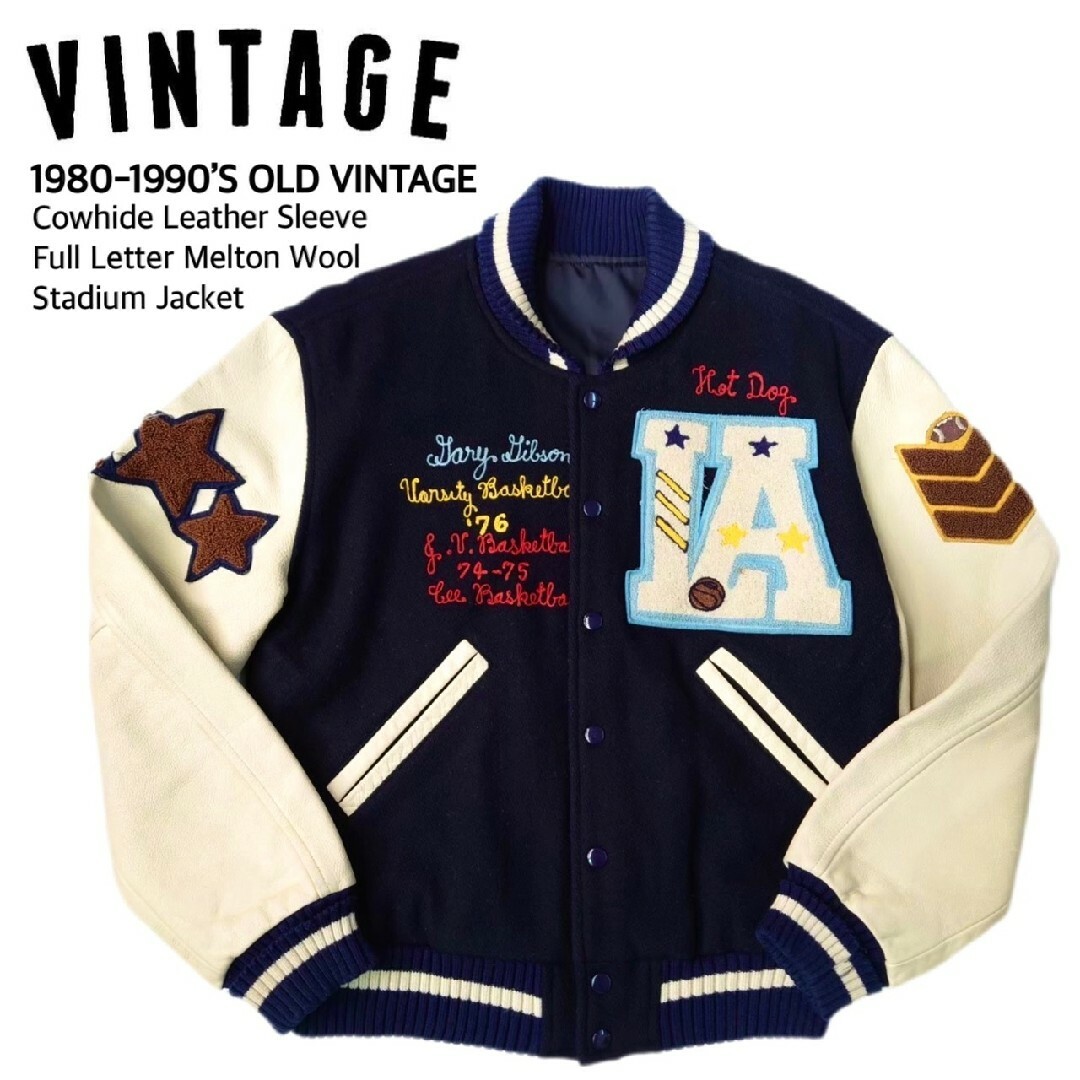 『超稀少 SCENE VAN JAC シーン ヴァンヂャケット 国内正規品 高級インディアンパッチ&刺繍デコメルトンウール衿袖レザースタジャン / VARSITY JACKET バーシティジャケット AWARD JACKET アワードジャケット メンズビギ J.プレス』